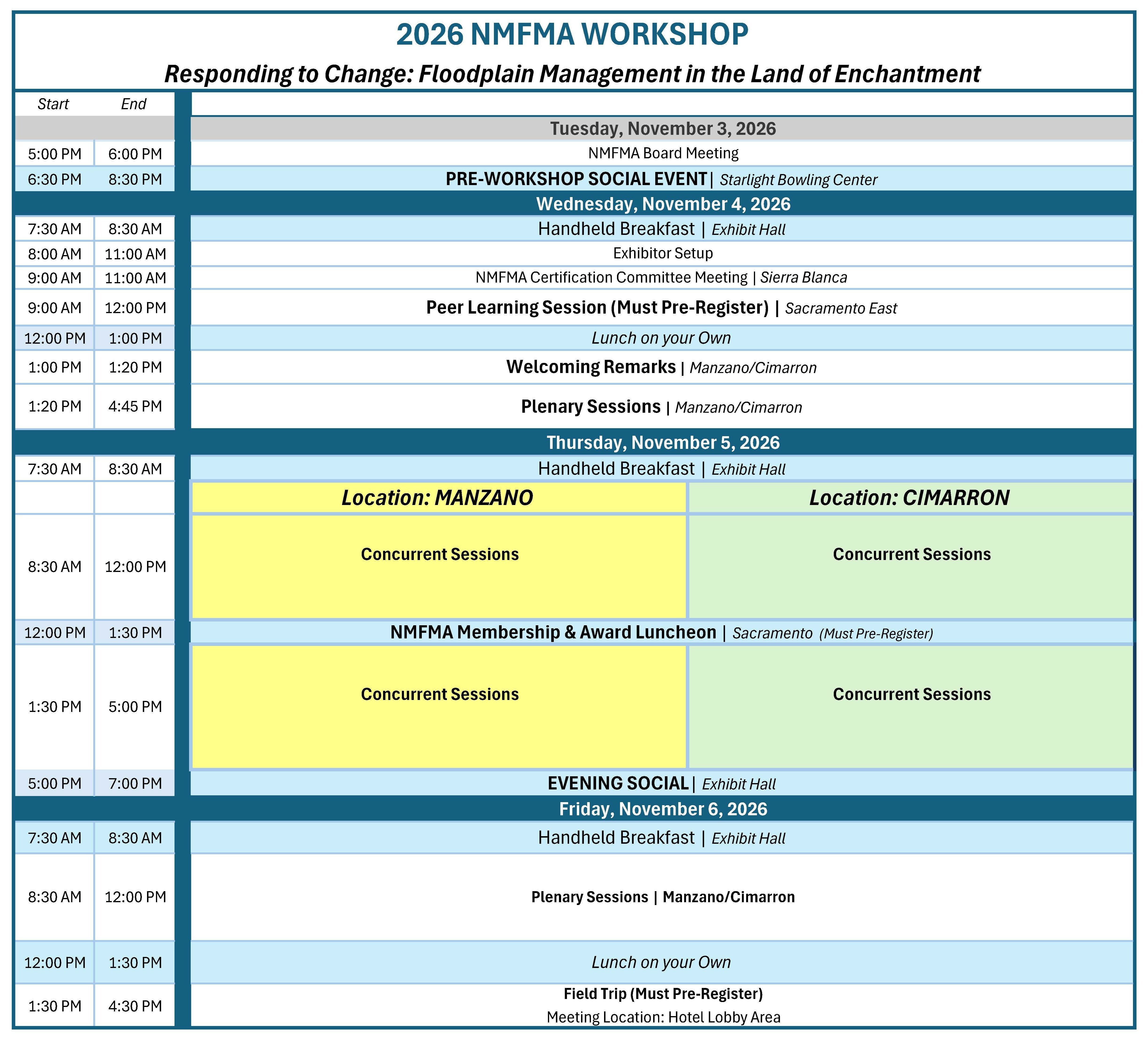 With the conference theme of “Responding to Change: Floodplain Management in the Land of Enchantment”, the workshop will feature, engaging plenary speakers and topical concurrent sessions on strategies being implemented to adapt to changes in policy and resources as well as the changing natural environment.